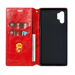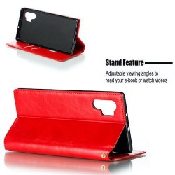 Etui-housse Galaxy Note10, protection totale en semi cuir de haute qualité, intérieur coque en silicone intégrée, compartiment de rangement de cartes, et fermeture magnétique. Ainsi, votre téléphone est complètement sécurisé du fait qu'il soit protégé du côté avant, arrière et du contour à 360 degré. Accessibilité facile à tous les boutons et maintien très agréable. Effet chic et sécurisé.