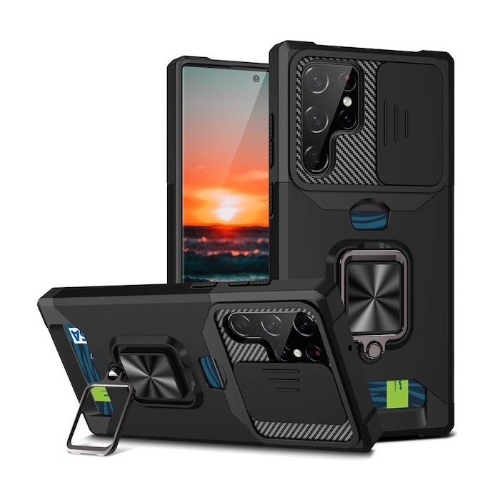 Ring à l'arrière pour un maintien sécurisé, prise de selfie plus facile, et support lors d'une visualisation de photos ou de vidéo. Compartiment carte. Accessibilité facile à tous les boutons.