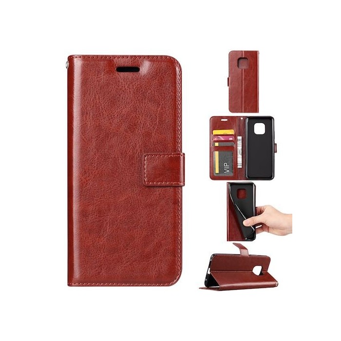 Etui-housse Huawei Mate20pro, protection totale en cuir-simili, intérieur coque en silicone intégrée, compartiment de rangement de cartes, et fermeture magnétique. Ainsi, votre téléphone est complètement sécurisé du fait qu'il soit protégé du côté avant, arrière et du contour à 360 degré. Accessibilité facile à tous les boutons et maintien très agréable.