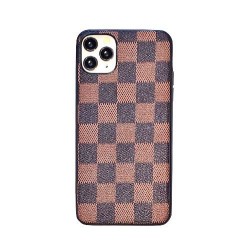 Coque iPhone, protection arrière en silicone dur. Motif carré marron et noir. Rebord parfait, anti chocs, anti glisse.