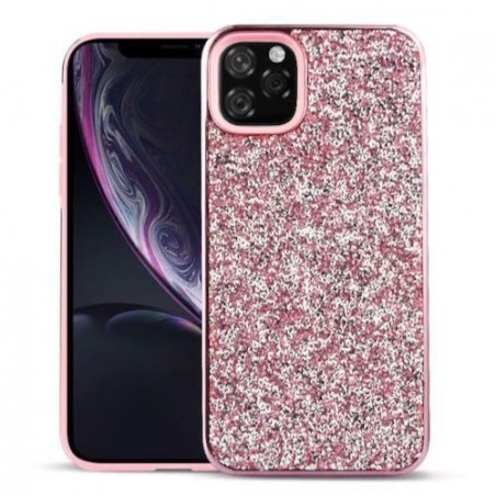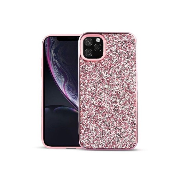 Coque protection arrière pour iPhone. Elle se compose de deux parties, contour frontal, élément arrière strass incrusté et un compartiment en silicone inséré.