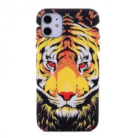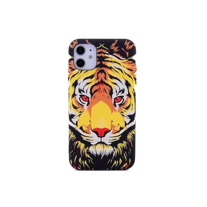 Coque protection arrière en silicone pour iPhone, motif fauve tigre.
