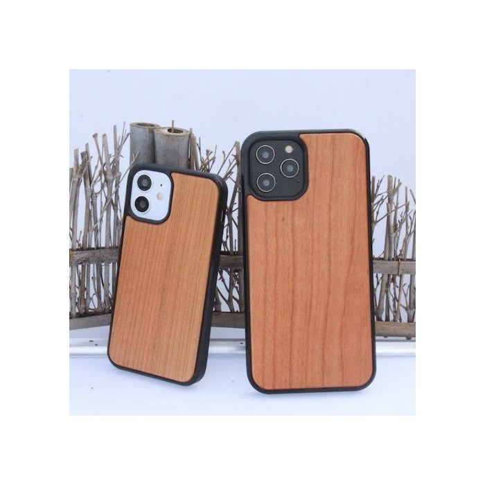 Coque protection arrière pour iPhone, arrière en bois de rose et bord en silicone. Bon maintien, et look très stylé. Accès aisé à toute les fonctionnalités.