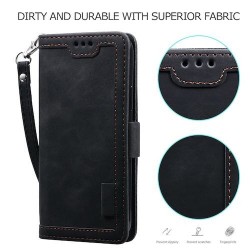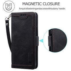 Etui-housse iPhone, protection totale en cuir-simili de haute qualité, intérieur coque en silicone intégrée, compartiment de rangement de cartes, et fermeture magnétique. Accessibilité facile à tous les boutons et maintien très agréable.