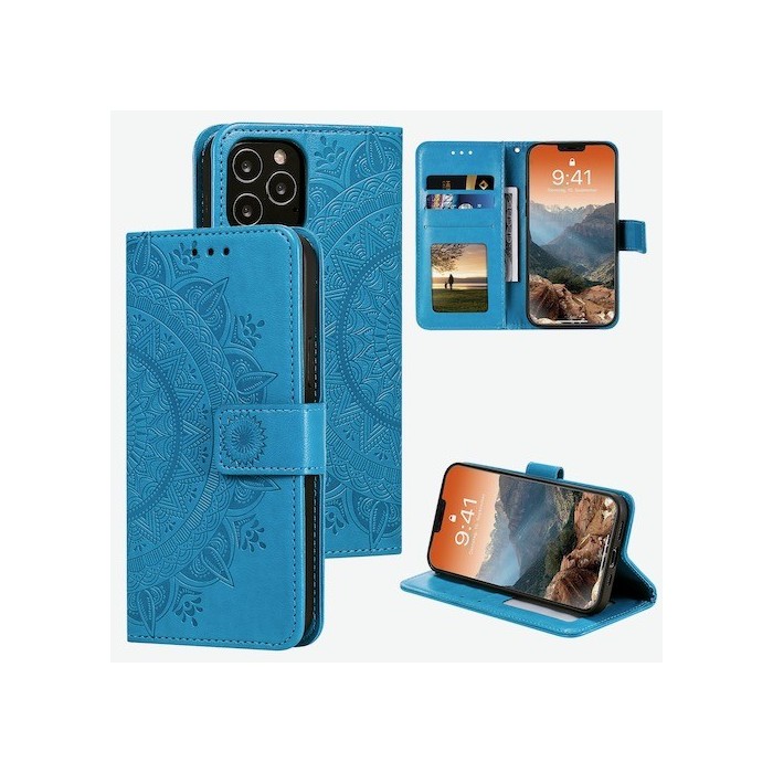 Etui-housse iPhone, protection totale en cuir-simili de haute qualité, motif broderie, intérieur coque en silicone intégrée, compartiment de rangement de cartes, et fermeture magnétique. Accessibilité facile à tous les boutons et maintien très agréable.
