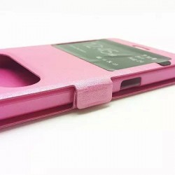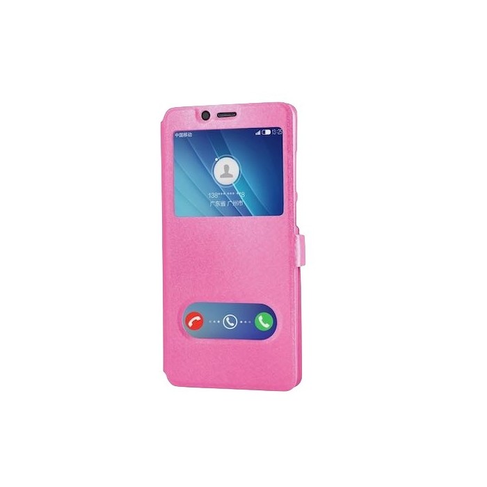 Etui-housse iPhone, protection totale en simili-cuir, coque intégrée, fermeture magnétique sur le côté. Double fenêtres, une vous permet de voir l'heure ou le nom de l'appelant, et l'autre pour répondre ou raccrocher, en slidant par glissement de doit dans la fenêtre du bas. Accessibilité facile à tous les boutons et maintien très agréable.Quasi pas d'épaisseur.