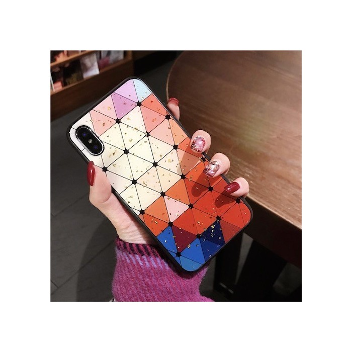 Coque iPhone multi couleurs, arlequin, protection arrière en silicone souple. Rebord parfait, pour une sécurité accru. Accessibilité facile à tous les boutons et maintien très agréable.