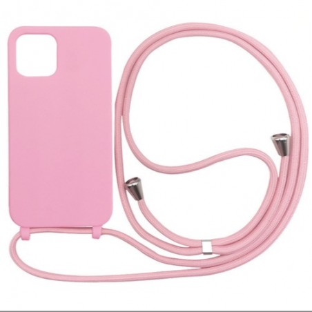 IPhone 13 Pro Max- Coque silicone-Cordon-Rose
