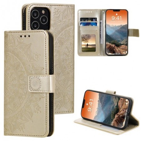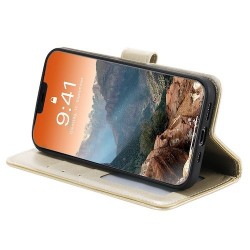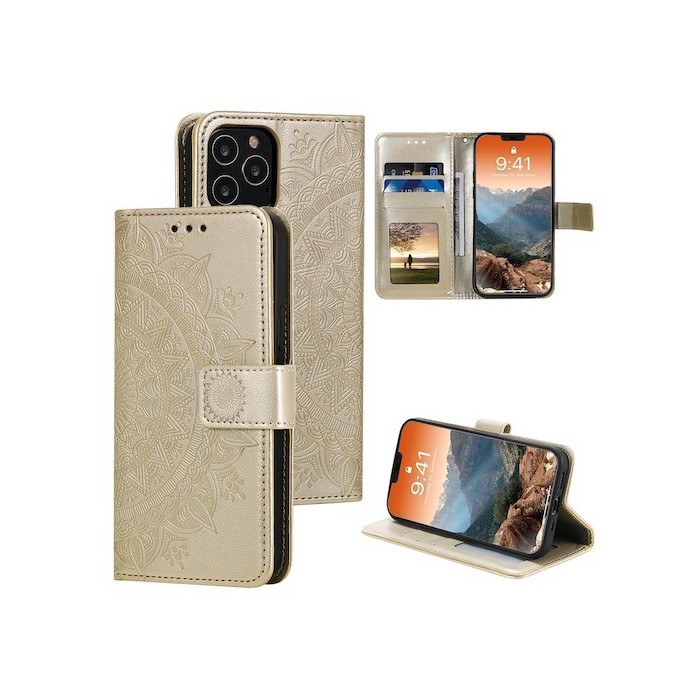 Etui-housse iPhone, protection totale en cuir-simili de haute qualité, motif broderie, intérieur coque en silicone intégrée, compartiment de rangement de cartes, et fermeture magnétique. Accessibilité facile à tous les boutons et maintien très agréable.