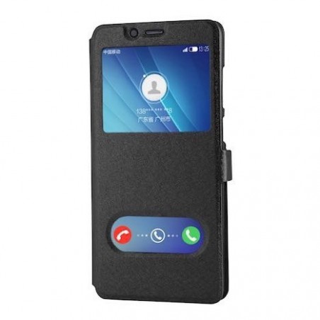 Etui-housse iPhone, protection totale en simili-cuir, coque intégrée, fermeture magnétique sur le côté. Double fenêtres, une vous permet de voir l'heure ou le nom de l'appelant, et l'autre pour répondre ou raccrocher, en slidant par glissement de doit dans la fenêtre du bas. Accessibilité facile à tous les boutons. Quasi pas d'épaisseur.