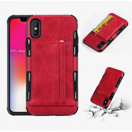 Coque protection arrière pour iPhone. Se compose de deux parties. Intérieur silicone et extérieur similicuir. Rangement de cartes. Anti choc, anti glisse.