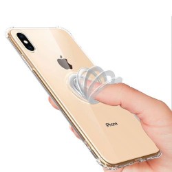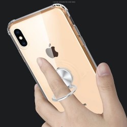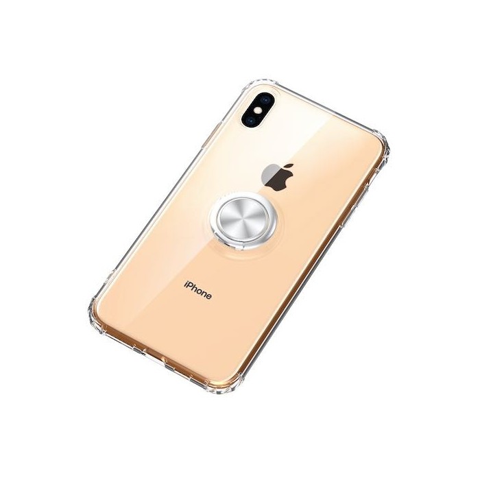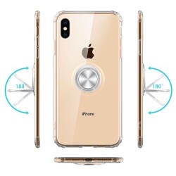 Coque iPhone, protection arrière transparente 100% silicone. Coins renforcés et rebord parfait. Bague à l'arrière pour un maintien ou support de téléphone. Accessibilité facile à tous les boutons.