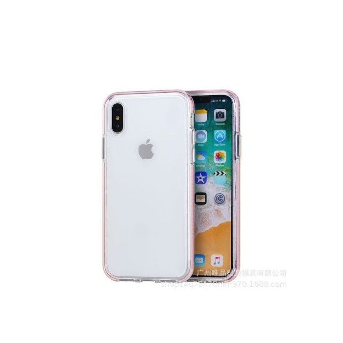 Coque iPhone, protection arrière transparente en silicone souple, contour supplémentaire en plastique, pour une sécurité supplémentaire. Rebord parfait. Accessibilité facile à tous les boutons et maintien très agréable.