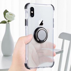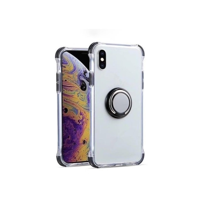 Coque iPhone XR, protection arrière transparente en Plexiglas, bord en silicone. Coins renforcés et rebord parfait. bague à l'arrière pour un maintien ou support de téléphone. Accessibilité facile à tous les boutons.