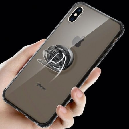 Coque iPhone, protection arrière transparente 100% silicone. Coins renforcés et rebord parfait. bague à l'arrière pour un maintien ou support de téléphone. Accessibilité facile à tous les boutons.