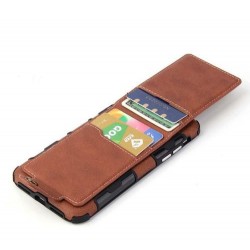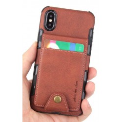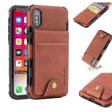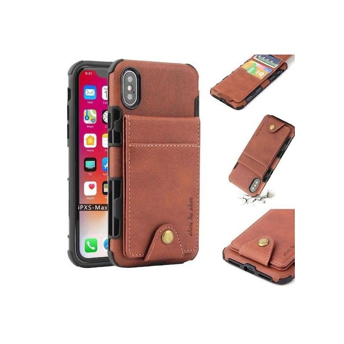 Coque protection arrière pour iPhone. Se compose de deux parties. Intérieur silicone et extérieur tissus synthétique résistant. Compartiment double pour rangement de cartes. Anti choc, anti glisse. Haute qualité.