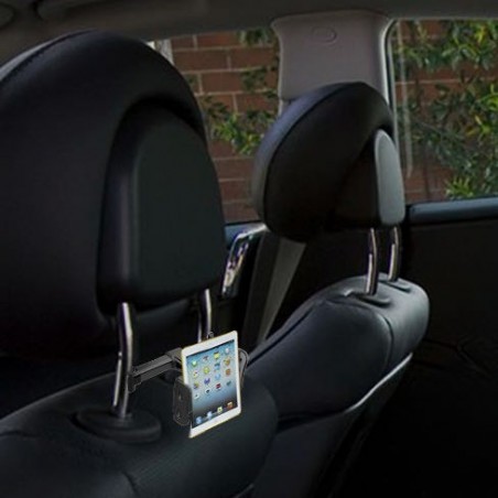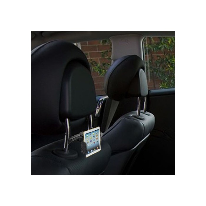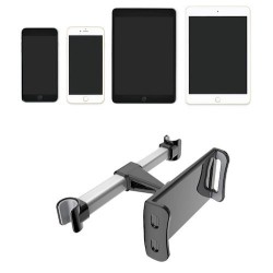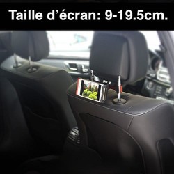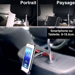 Support smartphone ou tablette. Ajustable automatiquement, selon la taille de l'écran. Compatible aux écran de 9 à 19.5cm. Fixation à l'arrière de l'appui tête. Facile à installer.