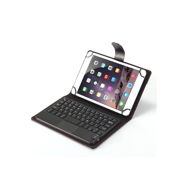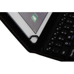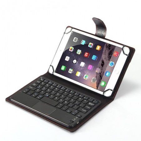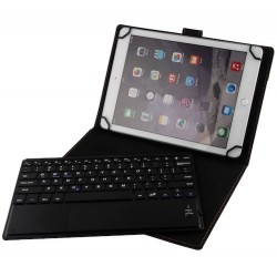 Etui, coque de protection pour tablette universel folio, utilisation comme ordinateur portable. Supports extensibles aux 4 coins, s'adaptent à toute tablette allant de 9 à 10.1". Robuste, facile à emporter, compatible IOS, Android et Windows. Pavé tactile, aspect cuir, fermeture aimantée, maintien parfait, et look très élégant.