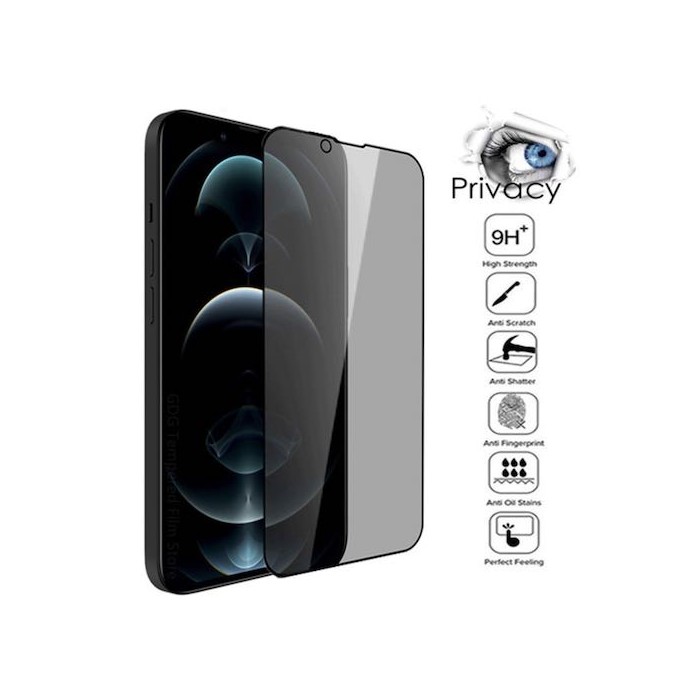 Vitre de protection-verre trempé-Privacy-Anti spy. Dureté de la surface du verre 9H, imperméable, repousse les traces de doigts, couvre entièrement l'écran et il se colle sur toute la surface. Total transparence et zéro bulles. Anti chocs, anti rayure et anti griffure. La sensibilité du tactile 100% compatible, l'épaisseur du verre 0.3mm. C'est le produit indispensable pour la protection d'écran de votre téléphone.