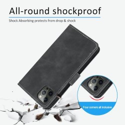 Etui-housse iPhone, protection totale en cuir-simili de haute qualité, aspect daim, intérieur coque en silicone intégrée, compartiment cartes, fermeture à clapet magnétique. Votre téléphone est complètement sécurisé du fait qu'il soit protégé du côté avant, arrière et du contour à 360 degré. Accessibilité facile à tous les boutons et maintien très agréable.