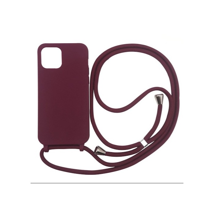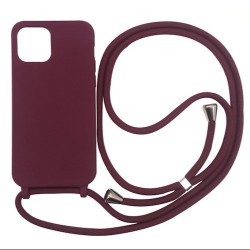 Iphone 14 Plus - Coque silicone-cordon-bordeaux