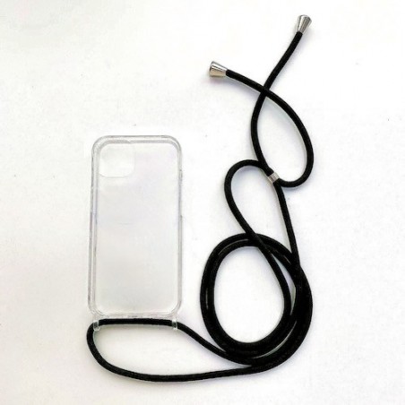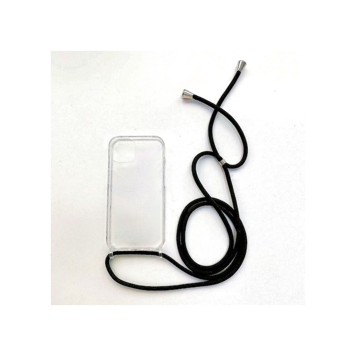 Coque iPhone. Protection arrière en silicone épais, inclus cordon. Anti-chocs, anti glisse. Lacet ajustable, pratique et sécurisé.