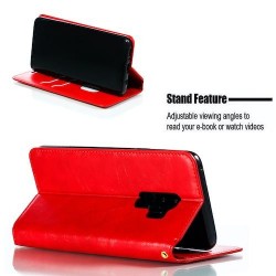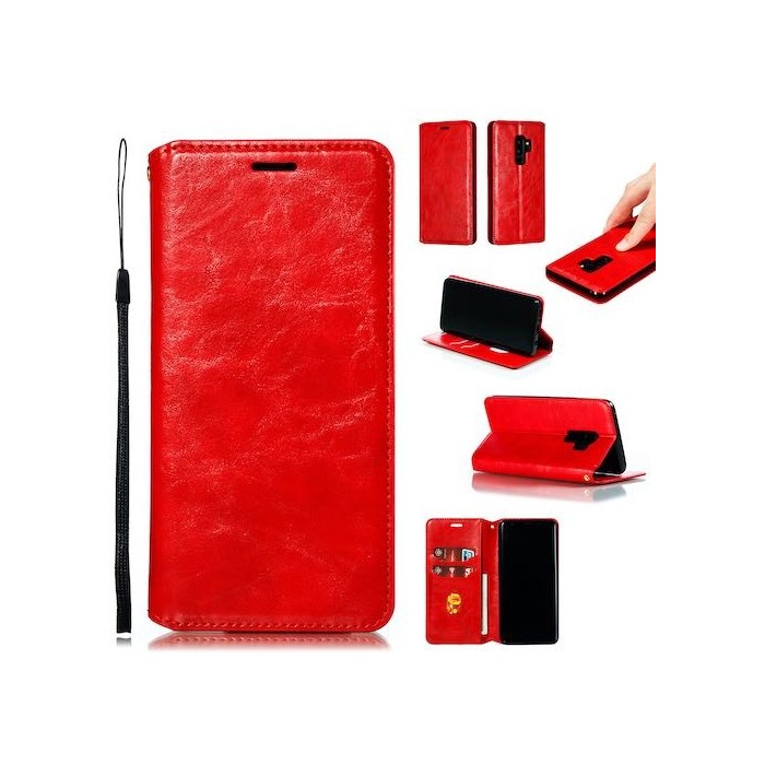 Etui-housse Galaxy S9plus, protection totale en semi cuir de haute qualité, intérieur coque en silicone intégrée, compartiment de rangement de cartes, et fermeture magnétique. Ainsi, votre téléphone est complètement sécurisé du fait qu'il soit protégé du côté avant, arrière et du contour à 360 degré. Accessibilité facile à tous les boutons et maintien très agréable. Effet chic et sécurisé.